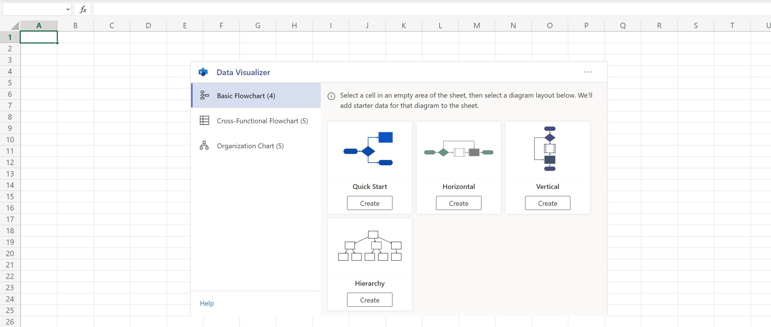 Or, launch Microsoft Excel in a browser and follow these steps: Insert > Add-ins > Microsoft Visio Data Visualizer.