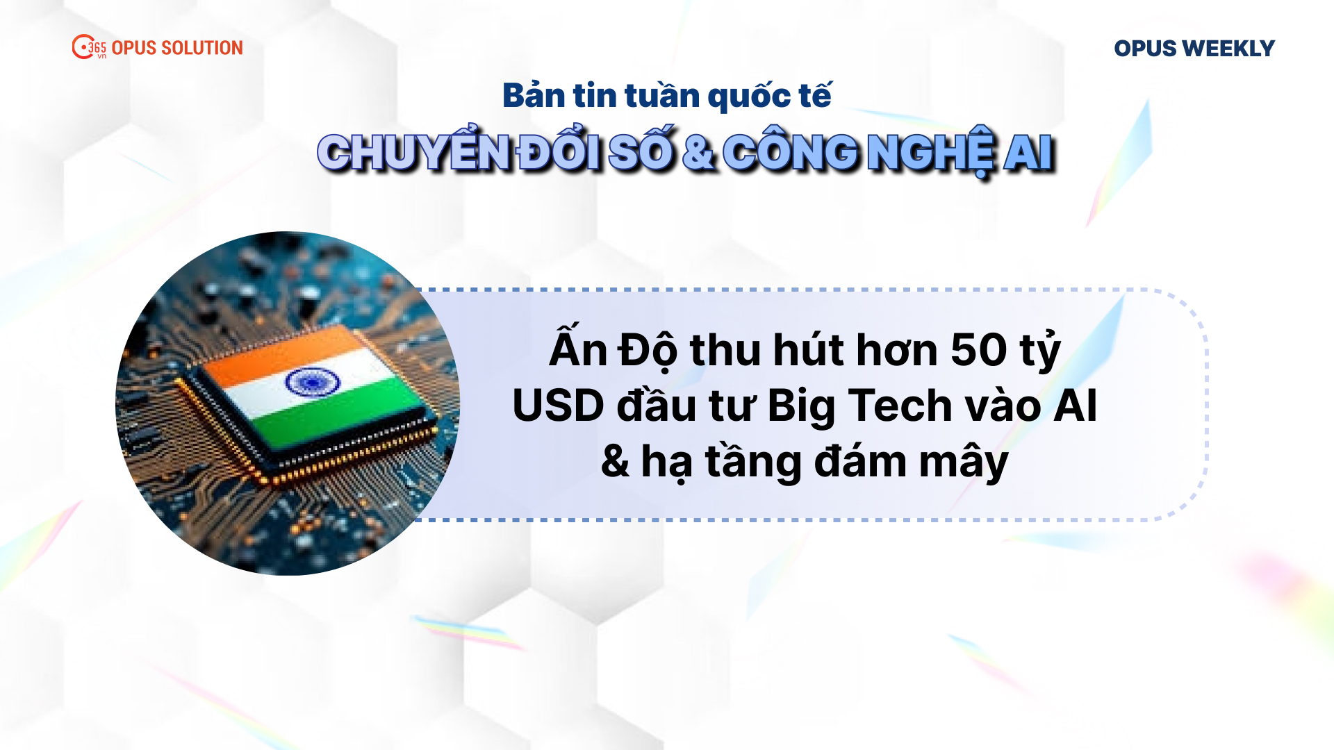 1. ẤN ĐỘ THU HÚT HƠN 50 TỶ USD ĐẦU TƯ BIG TECH VÀO AI & HẠ TẦNG ĐÁM MÂY